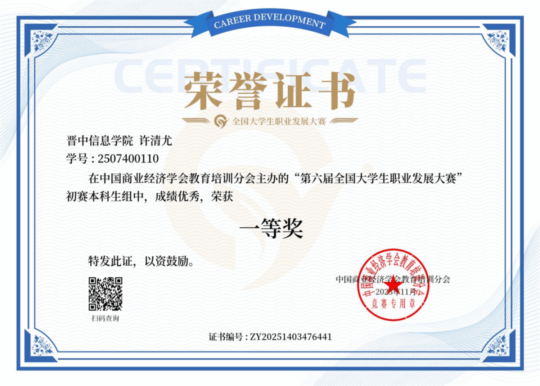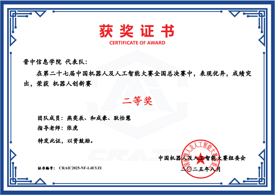 由山西省晋中消息学院从办的“2025乌马河全国大学生辩开赛”学校学生梁佳琪、葛静荣获优良意愿者。由山西省中国跳舞家协会举办的2025首届山西省“杏花杯”中国舞展演中学校李欣姝荣获编导二等花匠。全国大学生数学建模竞赛山西赛区赛事中,学校学生常越钦荣获全国二等,全国大学生人工智能+立异创业大赛中,学校学生常越钦荣获一等。由中国手艺创业协会校企融合专业委员会、全国大学生人工智能+立异创业大赛组委会从办的2025年全国大学生人工智能+立异创业大赛中,学校学生武怡然、澹台旭辰荣获一等。由中国手艺创业协会校企融合专业委员会、全国大学生人工智能+立异创业大赛组委会,2025年全国大学生人工智能+立异创业大赛初赛,学校学生袁悦婷、张国焘、赵爽荣获一等。