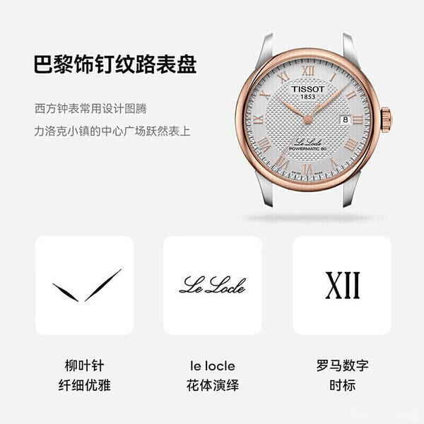 分析来说,这款手表不只是一件配饰,更是一种糊口立场的表现。做为父亲节的礼品,它传达了对父亲的深切关怀取祝愿,既适用,又有留念意义,完满适合用来表达你对他深挚的感情。这款天梭手表,必定会成为父身照顾的宝贵之物,伴跟着他踏遍更多的出色人生路程。这款天梭手表力洛克系列机械男表,不只是一款超卓的时间东西,更是一种身份的意味。对于逃求高质量糊口的男士来说,这款手表适合各类场所,无论是成功的商务会议,仍是浪漫的约会,它都能为你的抽象加分。简约而不简单的设想让佩带者显得愈加优良,搭配多种气概的服拆,让你无论正在什么场所都能自傲满满。这款手表搭载了Powermatic 80从动机械机芯,供给精准不变的计时功能,是时间掌控者的抱负选择。表盘采用巴黎钉纹设想,搭配典范的罗马数字时标,彰显出文雅取崇高。柳叶针的设想更是为全体添加了几分灵动感,细节之处展示出品牌的存心。同时,表镜采用人制蓝宝石水晶玻璃,具备极高的耐磨性和抗刮伤特征,无需担忧日常糊口中的小磕碰。
